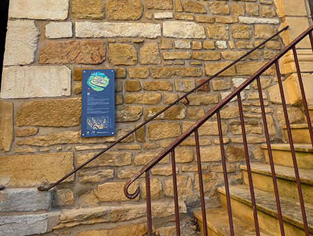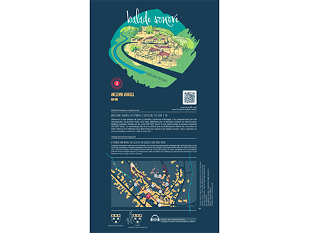 Un panneau par centre d’intérêt et par capsule sonore Il renvoie au QRCode et donne des explications principales pour ceux qui ne veulent pas l’audio.
