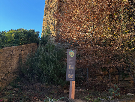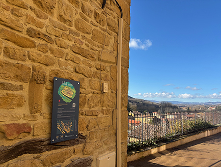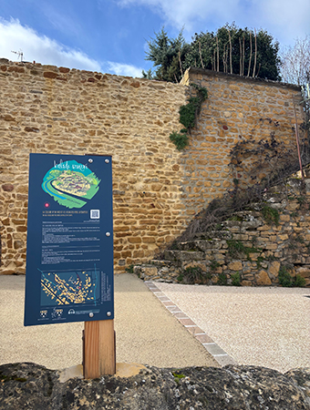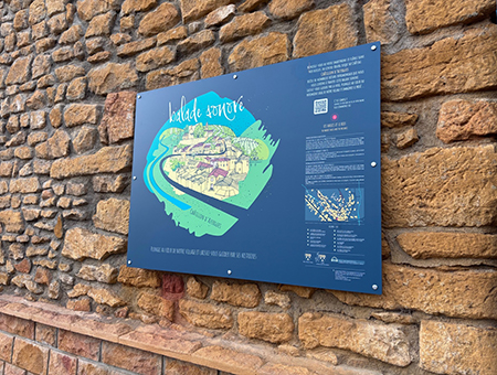 Un grand panneau à l’entrée du village Présente la balade, le concept, les points d’intérêt,